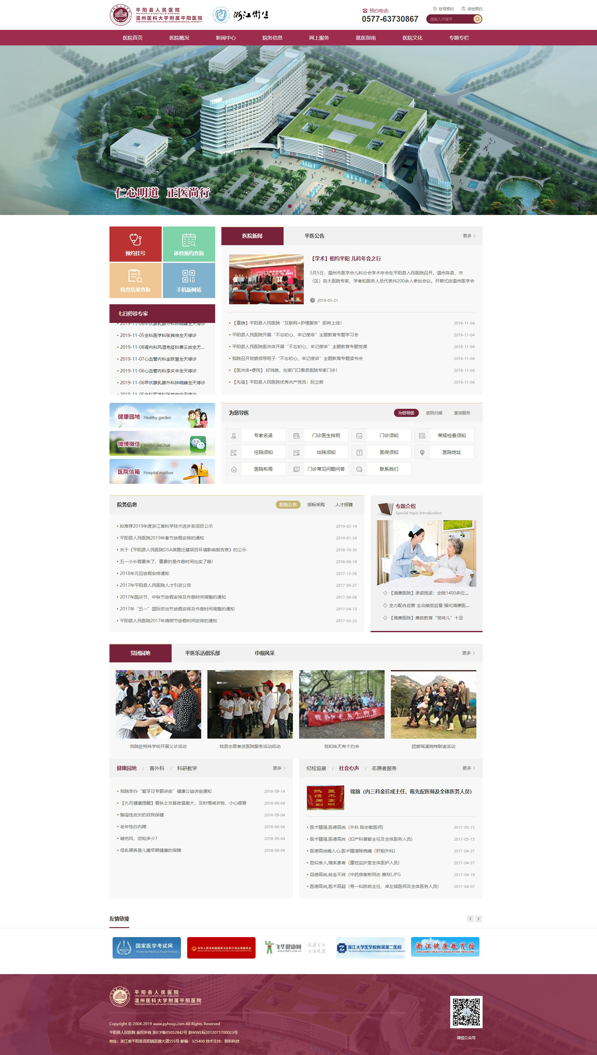 平陽縣人民醫(yī)院創(chuàng)建于1938年,是一所集醫(yī)療、教學(xué)、科研、預(yù)防和保健為一體的三級乙等綜合性醫(yī)院。系溫州醫(yī)科大學(xué)附屬平陽醫(yī)院、浙江省高等醫(yī)學(xué)院校合格教學(xué)醫(yī)院、溫州醫(yī)科大學(xué)教學(xué)醫(yī)院、省級綠色醫(yī)院、省級平安醫(yī)院、省級愛嬰醫(yī)院、臺灣奇美醫(yī)院合作醫(yī)院、浙江大學(xué)醫(yī)學(xué)院附屬第一、二醫(yī)院協(xié)作醫(yī)院、中國人民解放軍海軍總醫(yī)院合作醫(yī)院、浙江省眼視光??坡?lián)盟成員單位及溫州醫(yī)科大學(xué)附屬眼視光醫(yī)院醫(yī)療聯(lián)合體成員單位,承擔(dān)著鰲江流域200多萬人口的醫(yī)療保健任務(wù)。