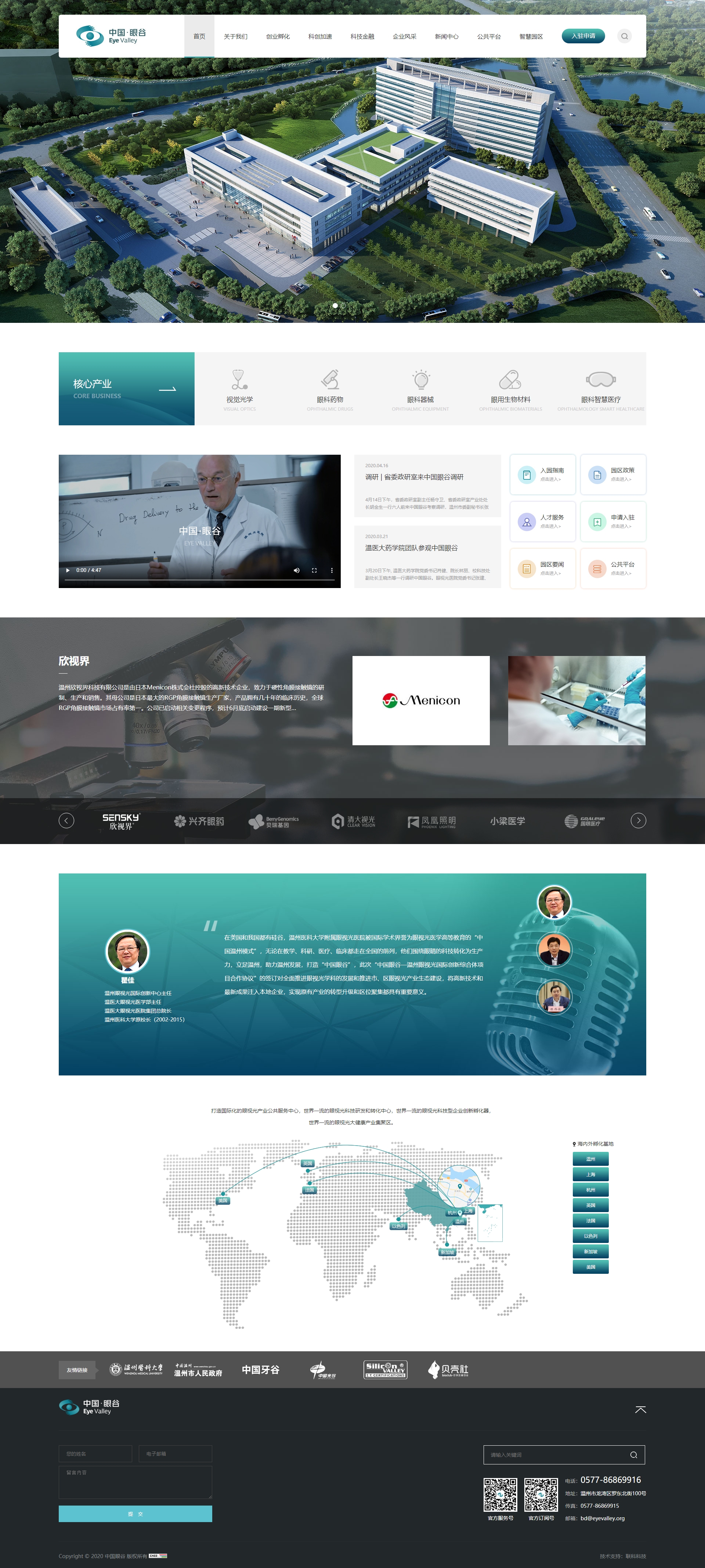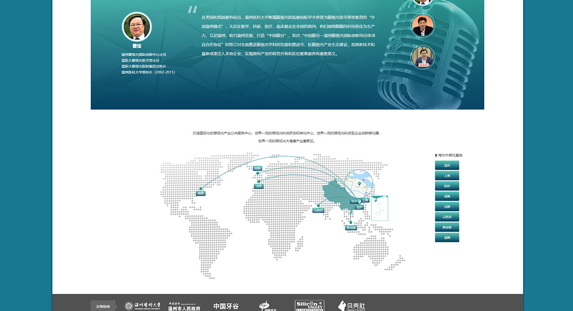 溫州醫(yī)科大附屬眼視光醫(yī)院聯(lián)合溫州市龍灣區(qū)(高新區(qū))建設(shè)“中國(guó)眼谷-溫州眼視光國(guó)際創(chuàng)新綜合體”,依托醫(yī)院在眼視光領(lǐng)域全國(guó)頂尖、世界一流的醫(yī)教項(xiàng)目先期投入7億元建設(shè)占地80畝、建筑面積8萬(wàn)平方米的孵化園區(qū),后期配套建設(shè)占地1000畝的科創(chuàng)園,與龍灣生命科技園形成“一體兩翼”大格局。