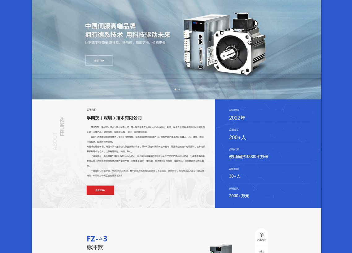 FRUNZE,孚朗茨(深圳)技術(shù)有限公司,是一家專注于工業(yè)自動化產(chǎn)品的研發(fā)、制造、銷售及應(yīng)用集成方案的技術(shù)驅(qū)動型公司,主營產(chǎn)品:伺服電機、伺服驅(qū)動器 、 PLC、運動控制器等。公司引進德國伺服底層技術(shù),專注于將高性能、全功能的德系伺服國產(chǎn)化,目前產(chǎn)品廣泛運用于機器人、3C、鋰電、紡織、印刷包裝、剪鈑折彎等領(lǐng)域。