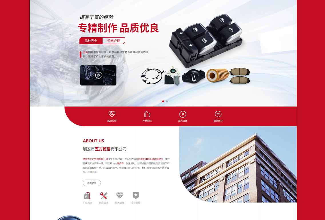 瑞安市五方貿(mào)易有限公司成立于2022年,專業(yè)生產(chǎn)銷售汽車配件和機(jī)械及其配件,集產(chǎn)品研發(fā)和生產(chǎn)于一體。我公司地處瑞安市,交通便利。公司根據(jù)產(chǎn)品質(zhì)量要求,建立了嚴(yán)密的質(zhì)量檢驗(yàn)體系,產(chǎn)品遠(yuǎn)銷海外,享譽(yù)海內(nèi)外眾多市場(chǎng)。我們期待與全球客戶攜手合作,共創(chuàng)未來。