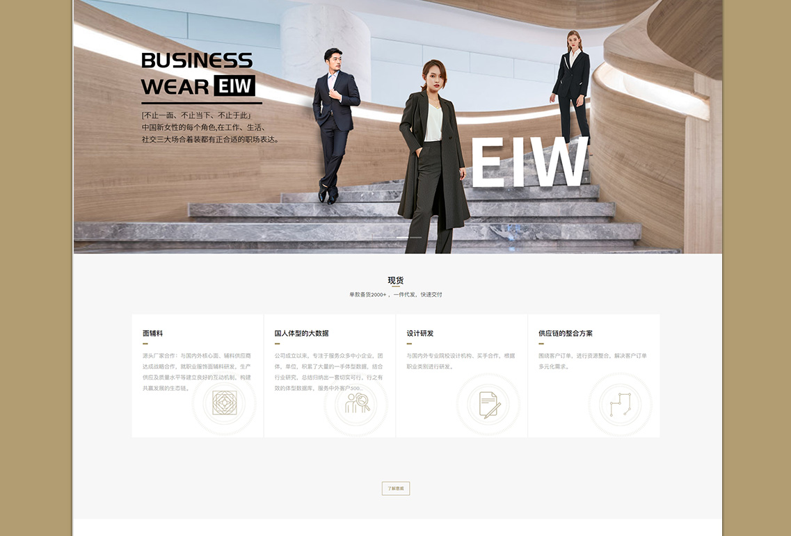 意威服飾于2014年3月25號(hào)成立,多年來,堅(jiān)持服務(wù)同行,服務(wù)品牌商,渠道商,已成為國(guó)內(nèi)知名的現(xiàn)貨職業(yè)裝一站式供應(yīng)鏈平臺(tái)。