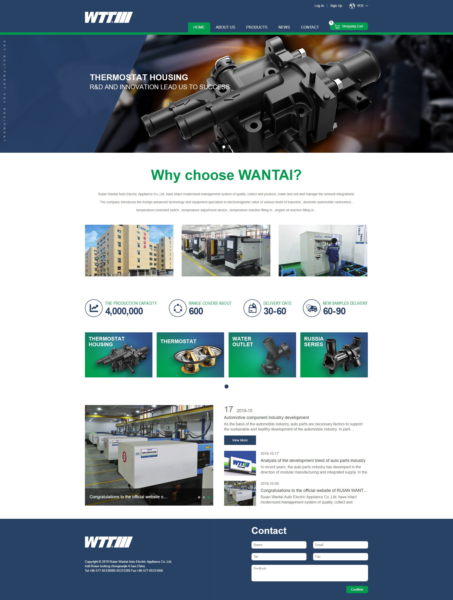 Ruian Wantai Auto Electric Appliance Co.,Ltd, have intact modernized management system of quality, collect and produce, make and sell and manage the network integratively. The company introduces the foreign advanced technology and equipment,specialize in electromagnetic valve of various kinds of imported , domestic automobile carburetors , temperature-controled switch , temperature adjustment device , temperature reaction filling in , engine oil reaction filling in , fuel tank float series, can form a complete set and use for every domestic and international brand automobile . At the same time the products can be had made to order according to the user's needs.
