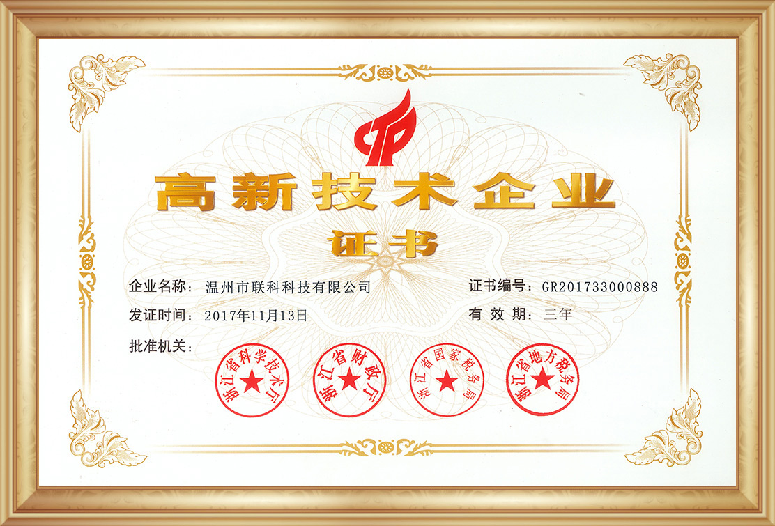 熱烈祝賀溫州市聯(lián)科科技有限公司被認定為國家高新技術(shù)企業(yè)