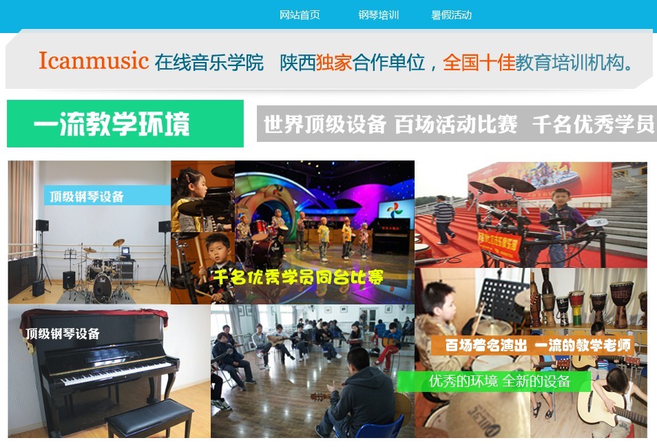 下面我用真實(shí)案例跟大家分享一下。第一個(gè)問題:我們賣的是什么?在導(dǎo)航下方第一句中已經(jīng)說明我們是一家音樂培訓(xùn)機(jī)構(gòu)。第二個(gè)問題:為什么要信任我們?全國十佳、世界頂級設(shè)備、百場活動(dòng)比賽、千名優(yōu)秀學(xué)員,這簡短的幾句話對于一個(gè)外行人來說第一印象是這家結(jié)構(gòu)很有實(shí)力,除此之外我們還可以從圖片中看到中央電視臺大風(fēng)車的圖片更增加了用戶的信賴感。第三個(gè)問題為何要選擇我們?學(xué)習(xí)音樂本應(yīng)是一件快樂、輕松的事情,但是很多學(xué)校搞的非常痛苦、刻板而從上圖中可以看教學(xué)環(huán)境清新舒適,學(xué)員活潑充滿激情。這樣就很好的解決了營銷的三大問題,但我覺得應(yīng)該在上面放一些老師與明星的合影或者得獎(jiǎng)的照片效果會(huì)更好,