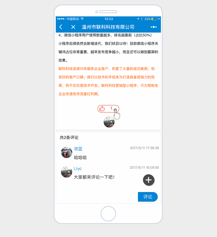 實現(xiàn)對某篇文章或內(nèi)容進行點贊并統(tǒng)計,與用戶產(chǎn)生交互關(guān)系,提高用戶粘度。